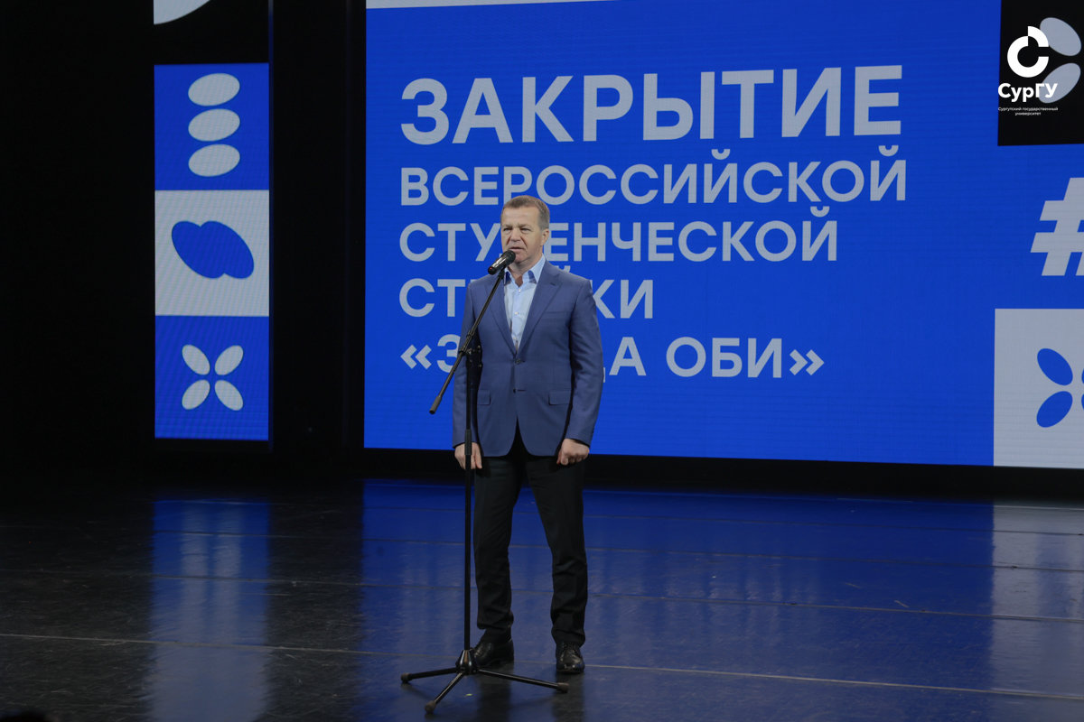 В Театре СурГУ 25 августа состоялось торжественное закрытие Всероссийской студенческой стройки «Звезда Оби», в которой участвовали 350 студентов из 13 регионов России. В течение двух месяцев молодые люди и девушки принимали участие в возведении второго моста через Обь в Сургуте, тем самым закрепив статус города ударных строек.