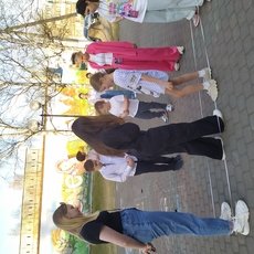 Волонтеры работали в игровой зоне на свежем воздухе. Участие в давно забытых играх «классики» и «скакалки через резинку» не оставило равнодушными никого из присутствующих.